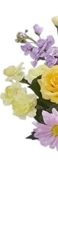 Our Pastel Delight Bouquet is perfect for Mothers Day, a thank you or simply Thinking of You gift. Let her know just how much you she means to you with this dreamy floral arrangement. With its yellow roses, cream spray carnations, purple asters, and seasonal greenery, this hand-tied bouquet appeals to anyone who loves pastel hues. Available in a vase or bouquet wrapping.