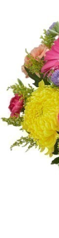 With its bold and vibrant display of yellow football chrysanthemums, hot pink gerbera, orange carnations, purple Matsumoto asters, and green hypericum berries, our Summer Sentiments Bouquet never fails to impress. This best-selling Mother's Day flower arrangement is available in a vase or bouquet wrapping.