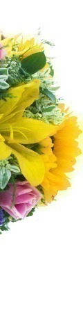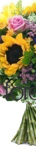 Captivating and colourful, this Sunflower & Roses arrangement will brighten any room. A lovely gift for Mother's Day, Wedding Anniversaries and Birthdays. It includes 3 large sunflowers, 4 yellow lilies, 3 pink roses and a variety of seasonal greenery to bring out the vibrant colours of the blooms.