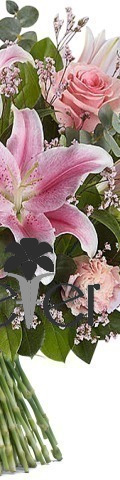 7 x Pink Stargazer Lilies, 7 x Pink Roses, 3 x Pink Carnations, Eucalyptus
